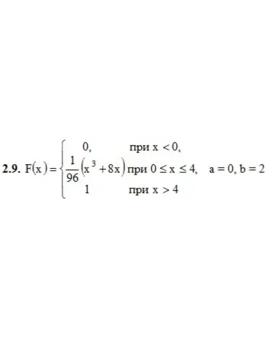 2. Дана функция распределения F(х) СВ X. Найти плотность распределения вероятностей f(x), математическое ожидание М(X), дисперсию D(X) и вероятность попадания СВ X на отрезок [а; b]. Построить графики функций F(х) и f(x).
