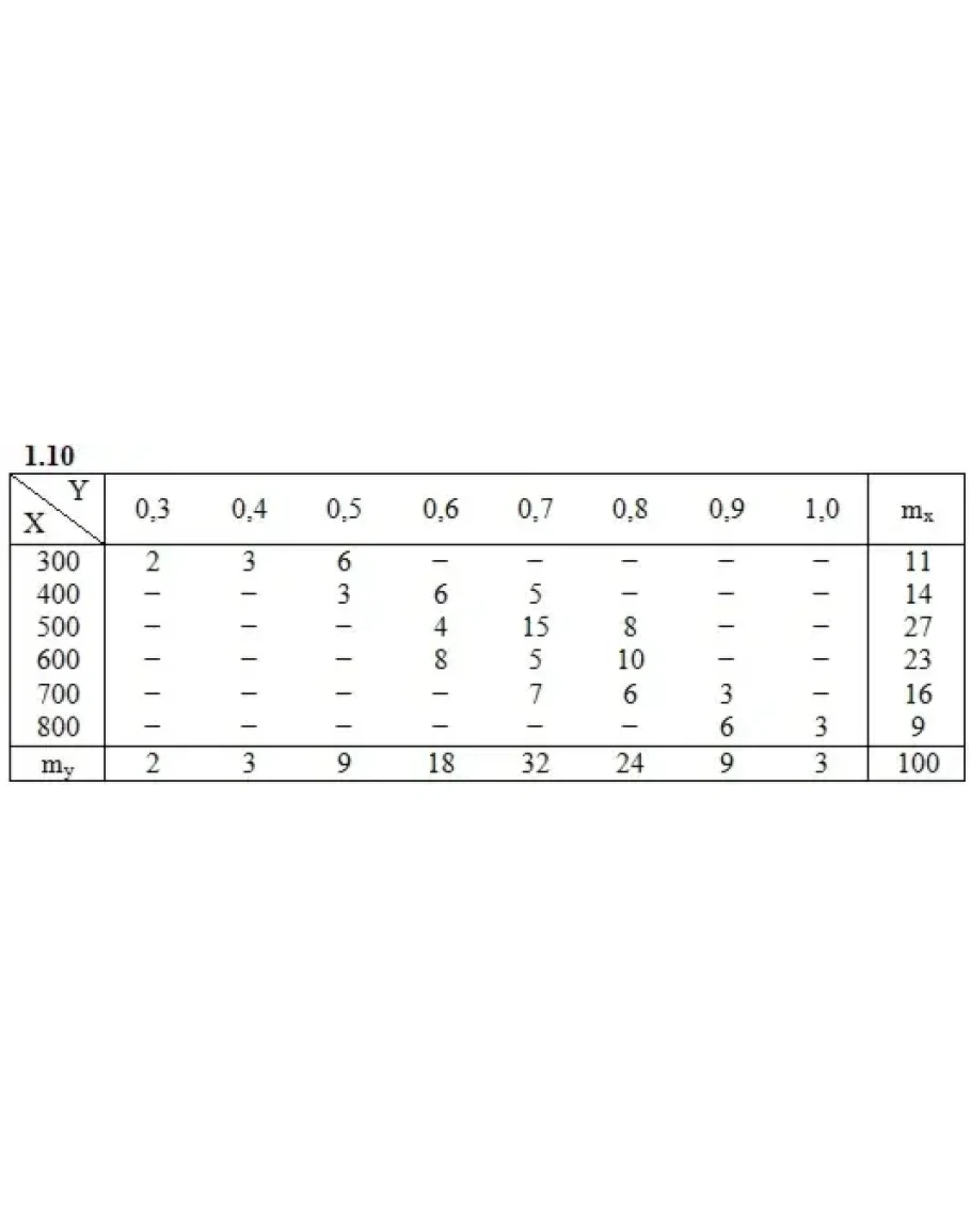 Дана таблица распределения 100 заводов по производственным средствам X(тыс. ден. ед.) и по суточной выработке Y(т). Известно, что между X и Y существует линейная корреляционная зависимость. Требуется: