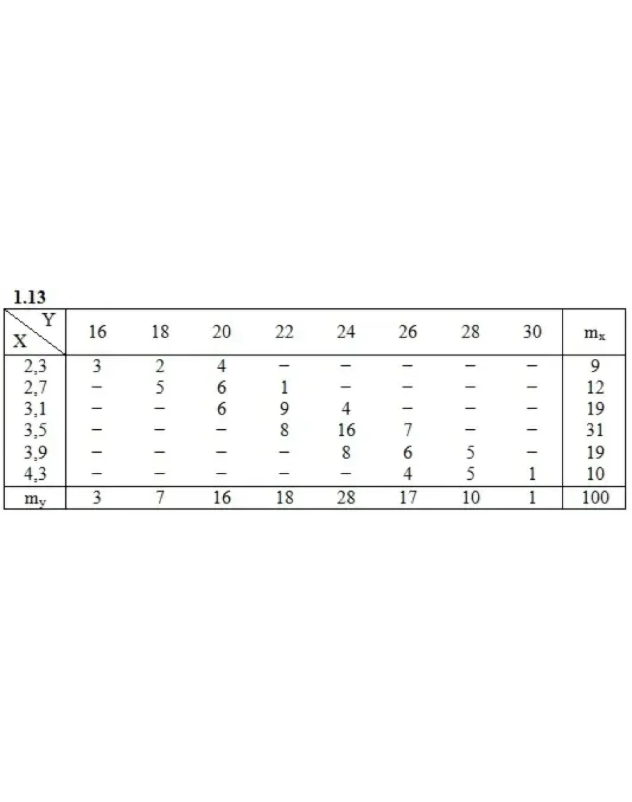 Дана таблица распределения 100 заводов по производственным средствам X(тыс. ден. ед.) и по суточной выработке Y(т). Известно, что между X и Y существует линейная корреляционная зависимость. Требуется: