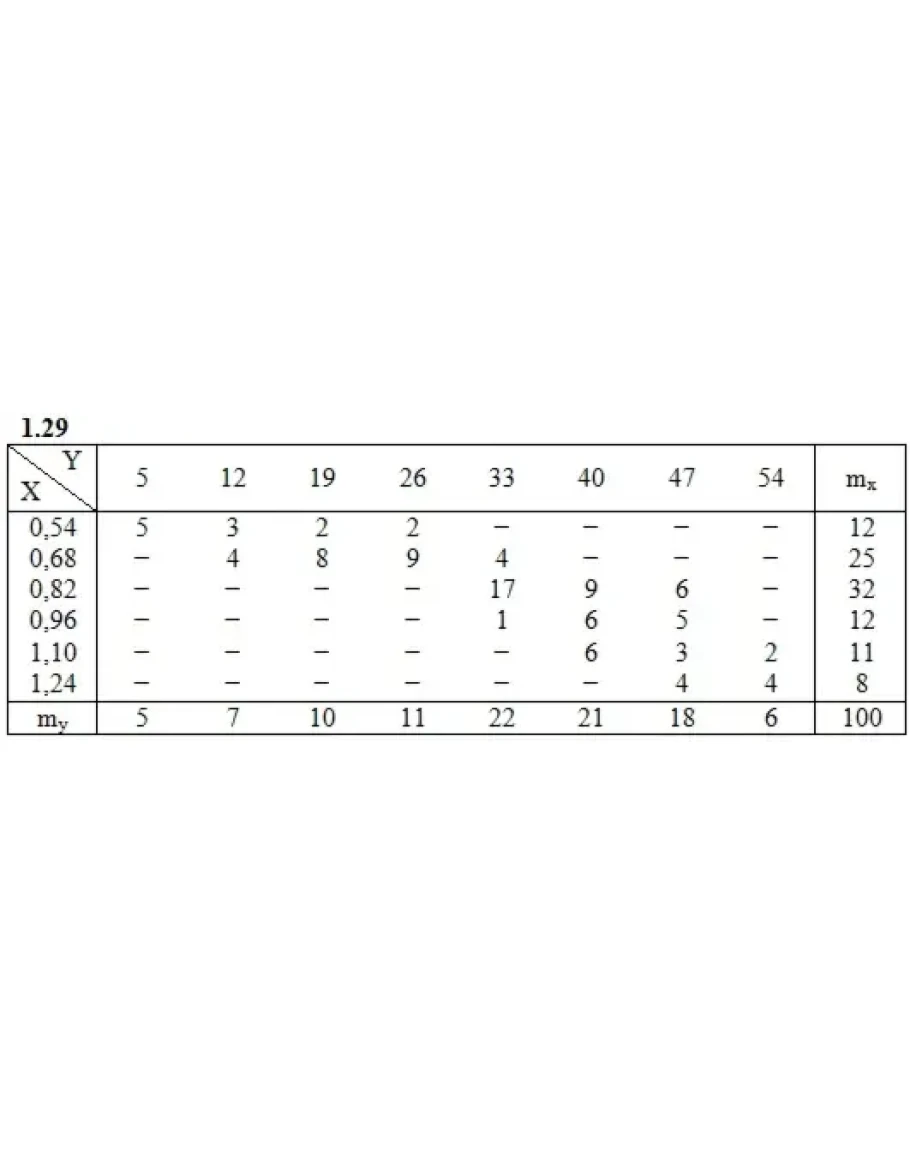 Дана таблица распределения 100 заводов по производственным средствам X(тыс. ден. ед.) и по суточной выработке Y(т). Известно, что между X и Y существует линейная корреляционная зависимость. Требуется: