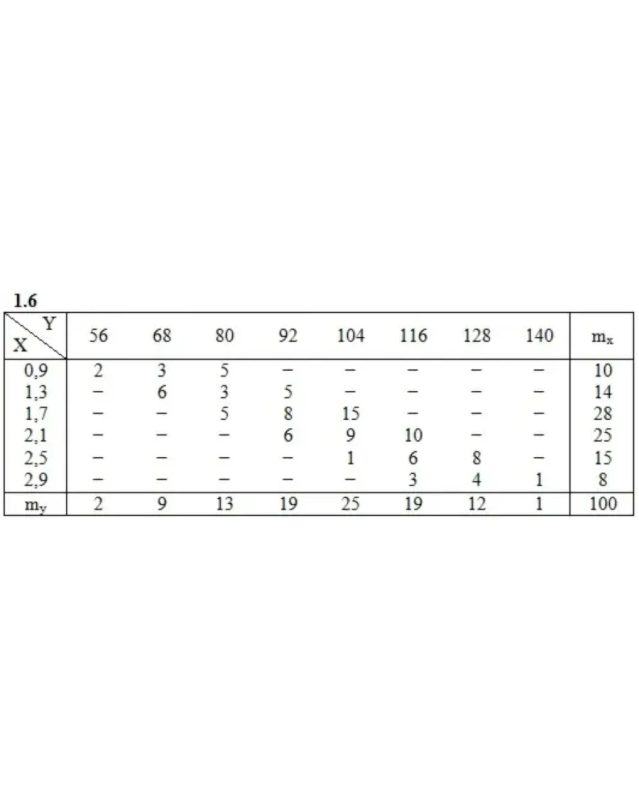 Дана таблица распределения 100 заводов по производственным средствам X(тыс. ден. ед.) и по суточной выработке Y(т). Известно, что между X и Y существует линейная корреляционная зависимость. Требуется: