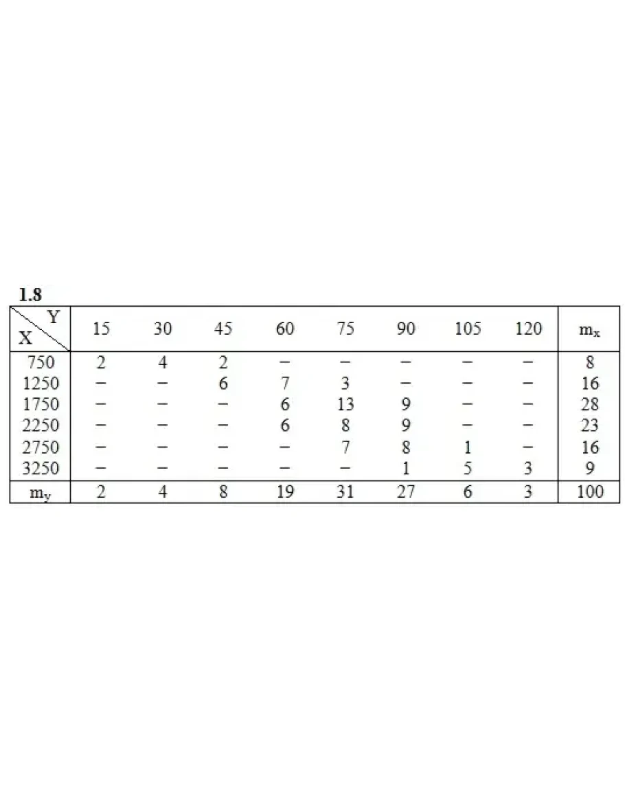 Дана таблица распределения 100 заводов по производственным средствам X(тыс. ден. ед.) и по суточной выработке Y(т). Известно, что между X и Y существует линейная корреляционная зависимость. Требуется: