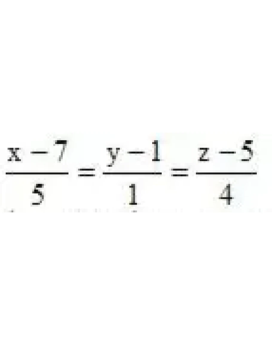 3.22 Найти точку пересечения прямой (x-7)/5=(y-1)/1=(z-5)/4 и плоскости 3x – y + 2z–8=0