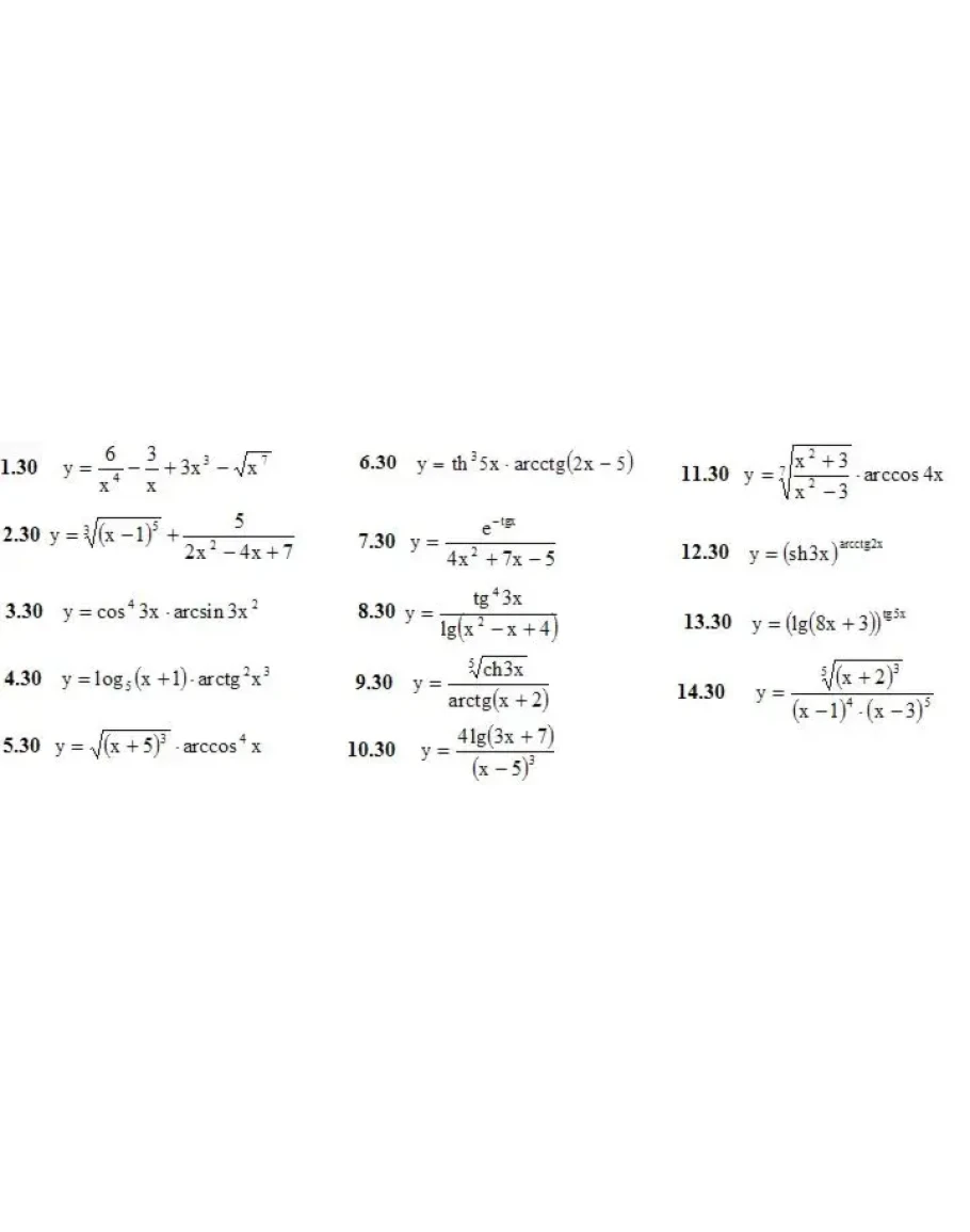 1. Продифференцировать данные функции (1-14)