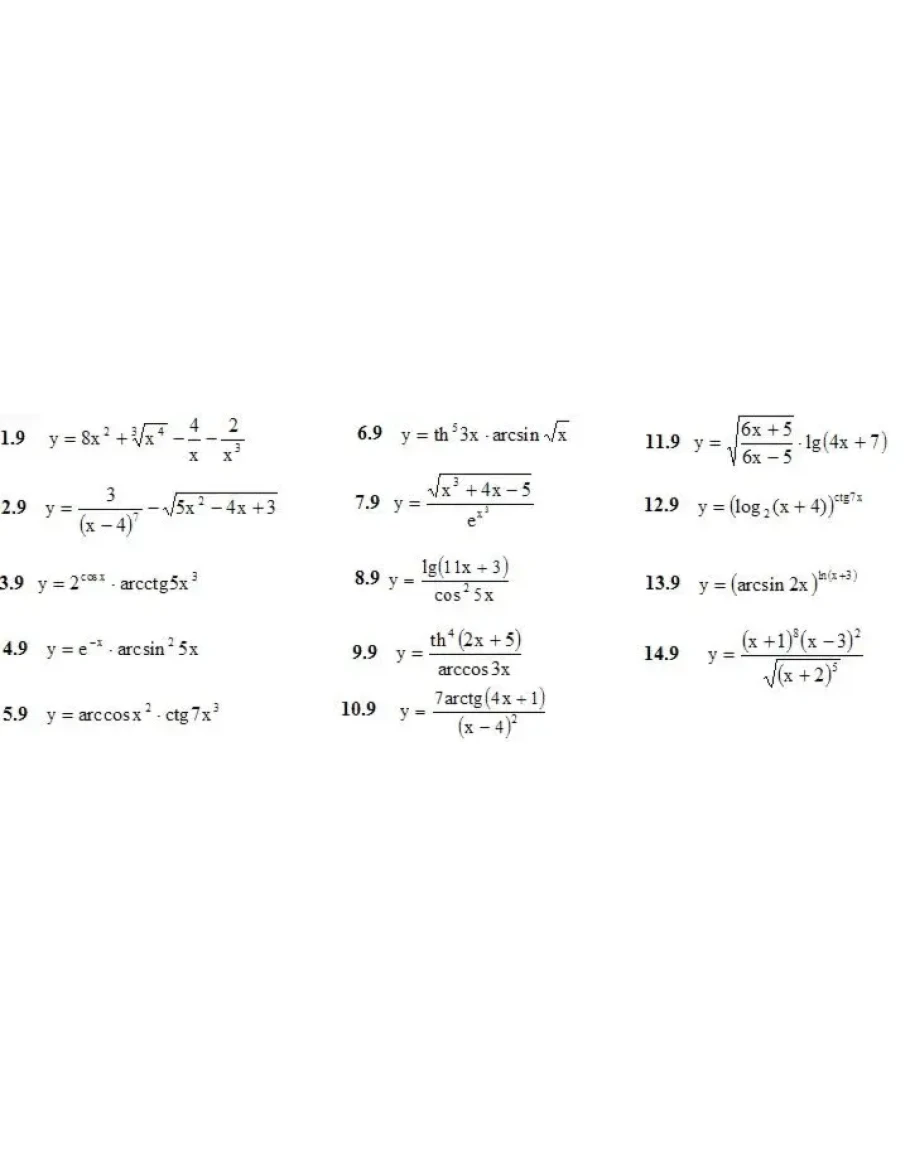 1. Продифференцировать данные функции (1-14)