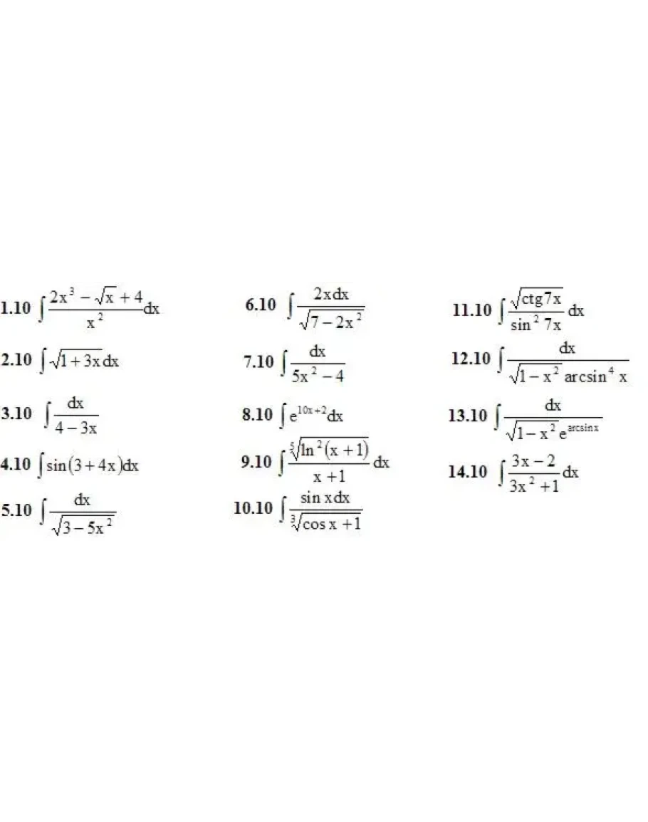1. Найти неопределенные интегралы (в заданиях 1-5 результаты интегрирования проверить дифференцированием). (1-14)