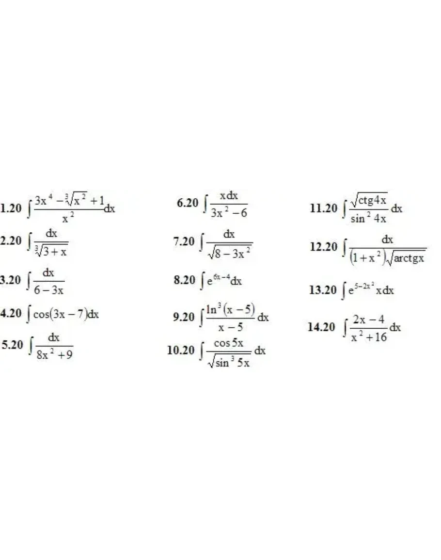 1. Найти неопределенные интегралы (в заданиях 1-5 результаты интегрирования проверить дифференцированием). (1-14)