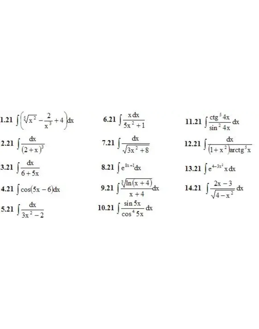 1. Найти неопределенные интегралы (в заданиях 1-5 результаты интегрирования проверить дифференцированием). (1-14)