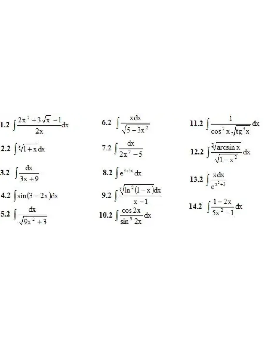 1. Найти неопределенные интегралы (в заданиях 1-5 результаты интегрирования проверить дифференцированием). (1-14)