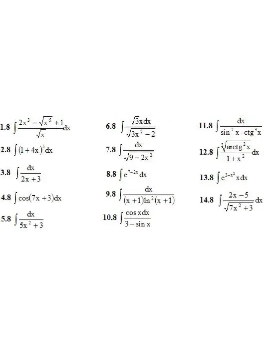 1. Найти неопределенные интегралы (в заданиях 1-5 результаты интегрирования проверить дифференцированием). (1-14)