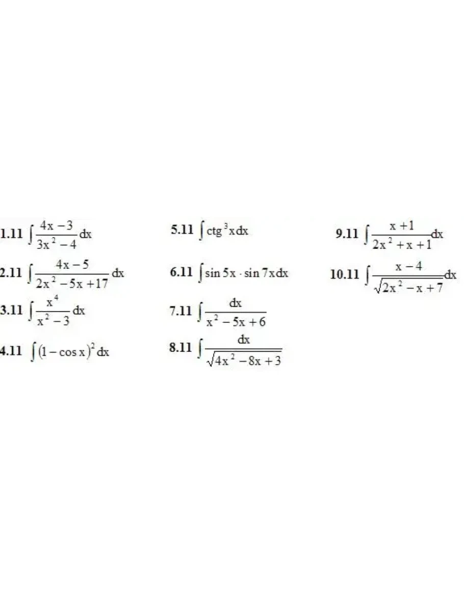 1. Найти неопределенные интегралы. (1-10)