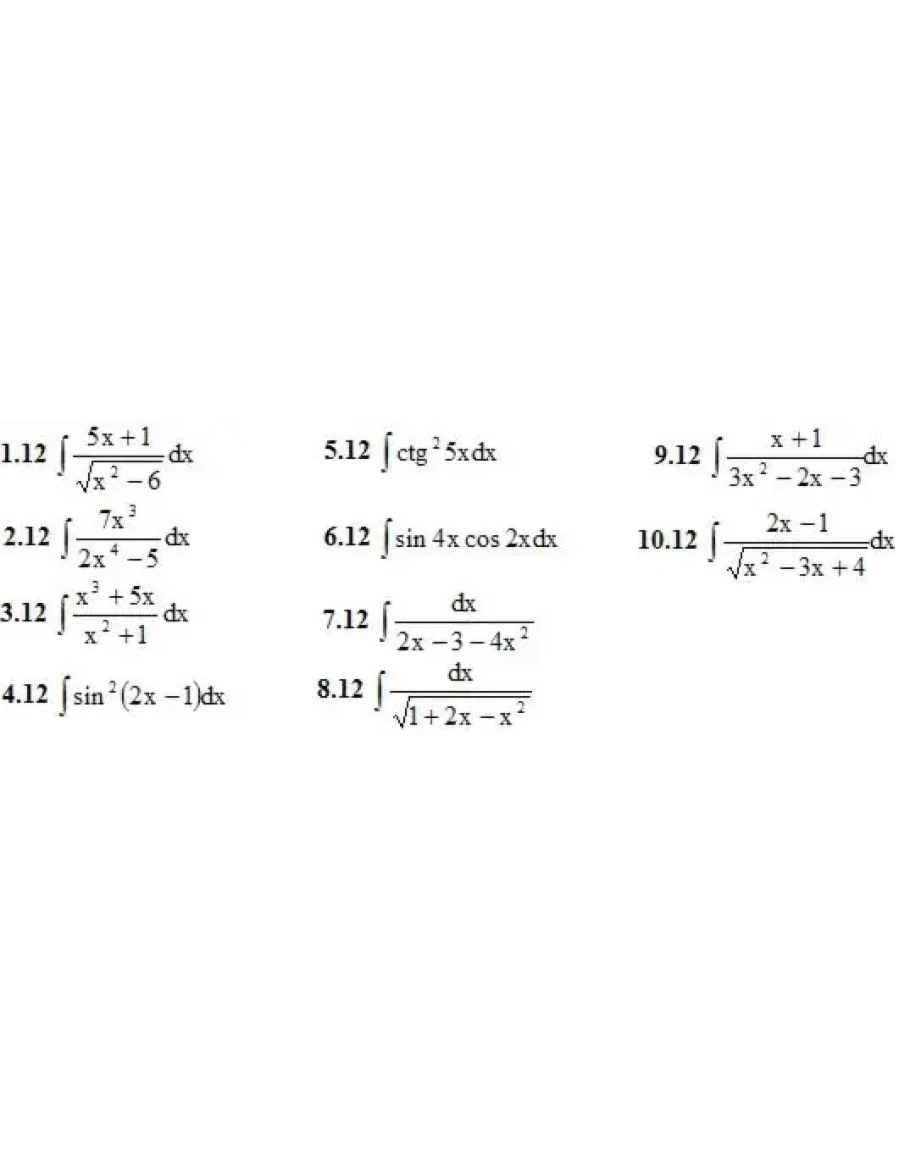 1. Найти неопределенные интегралы. (1-10)