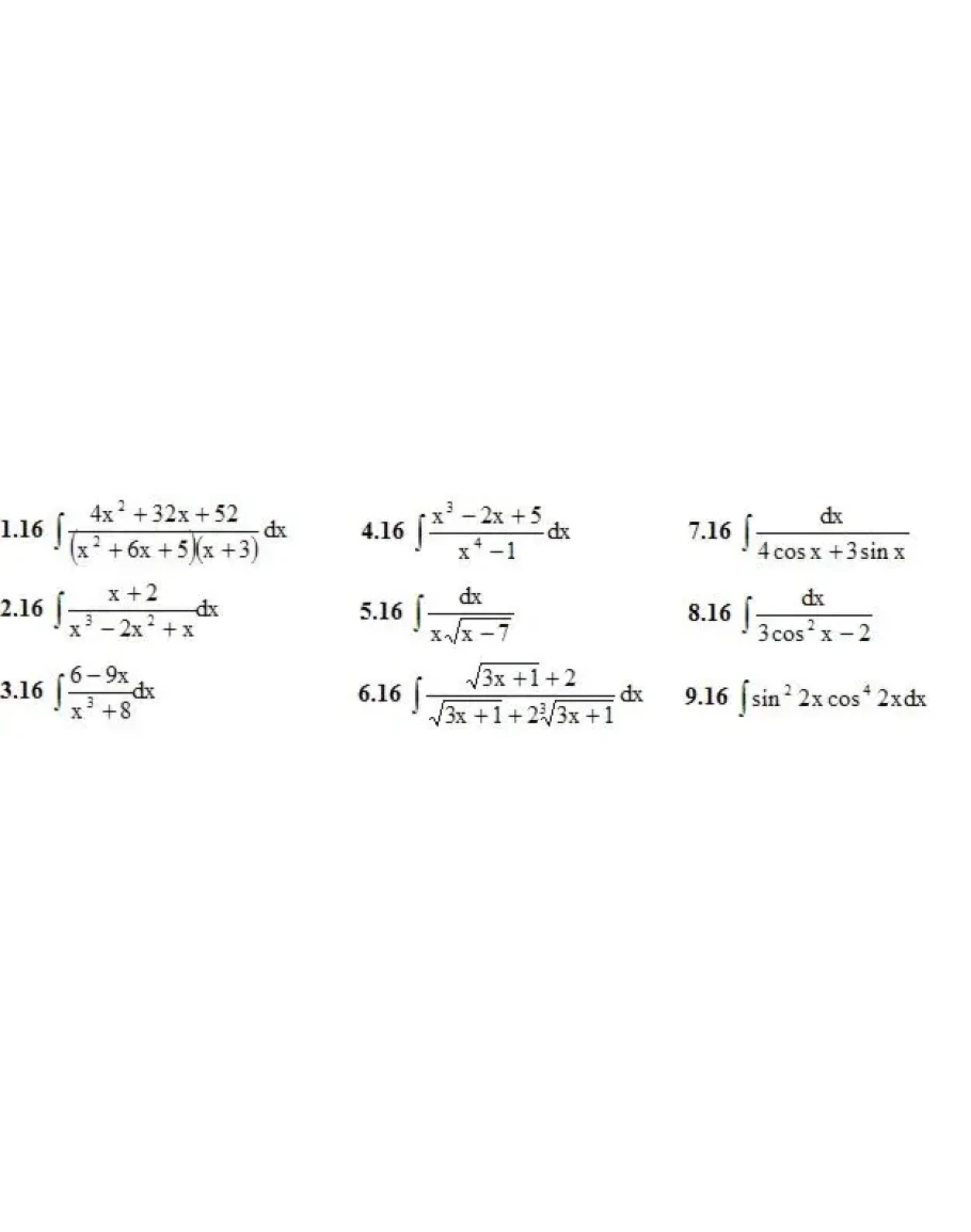 1. Найти неопределенные интегралы. (1-9)