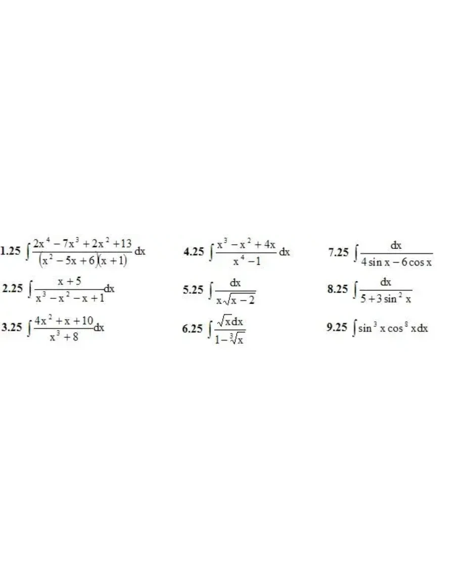 1. Найти неопределенные интегралы. (1-9)