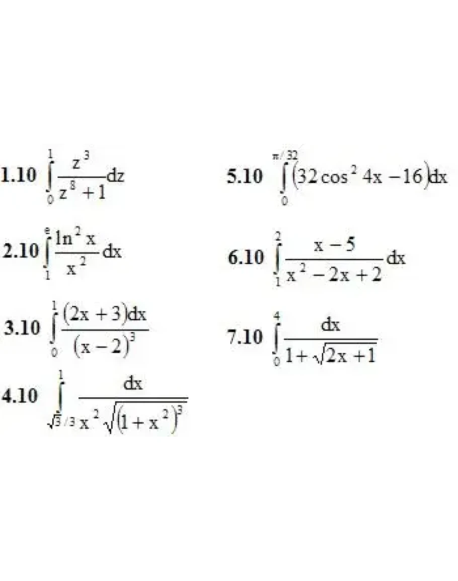 1. Вычислить определенные интегралы с точностью до двух знаков после запятой. (1-7)