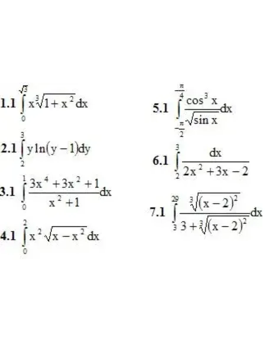 1. Вычислить определенные интегралы с точностью до двух знаков после запятой. (1-7)