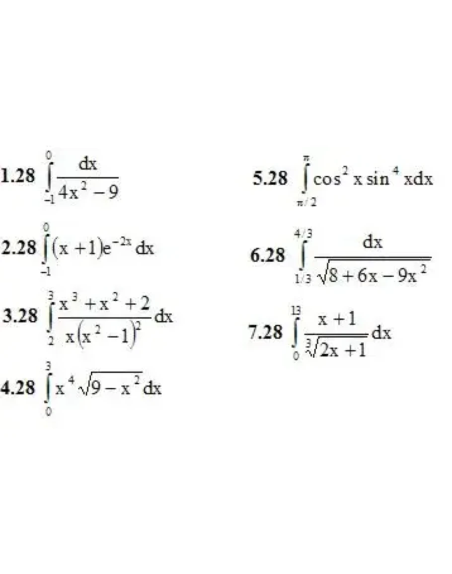 1. Вычислить определенные интегралы с точностью до двух знаков после запятой. (1-7)