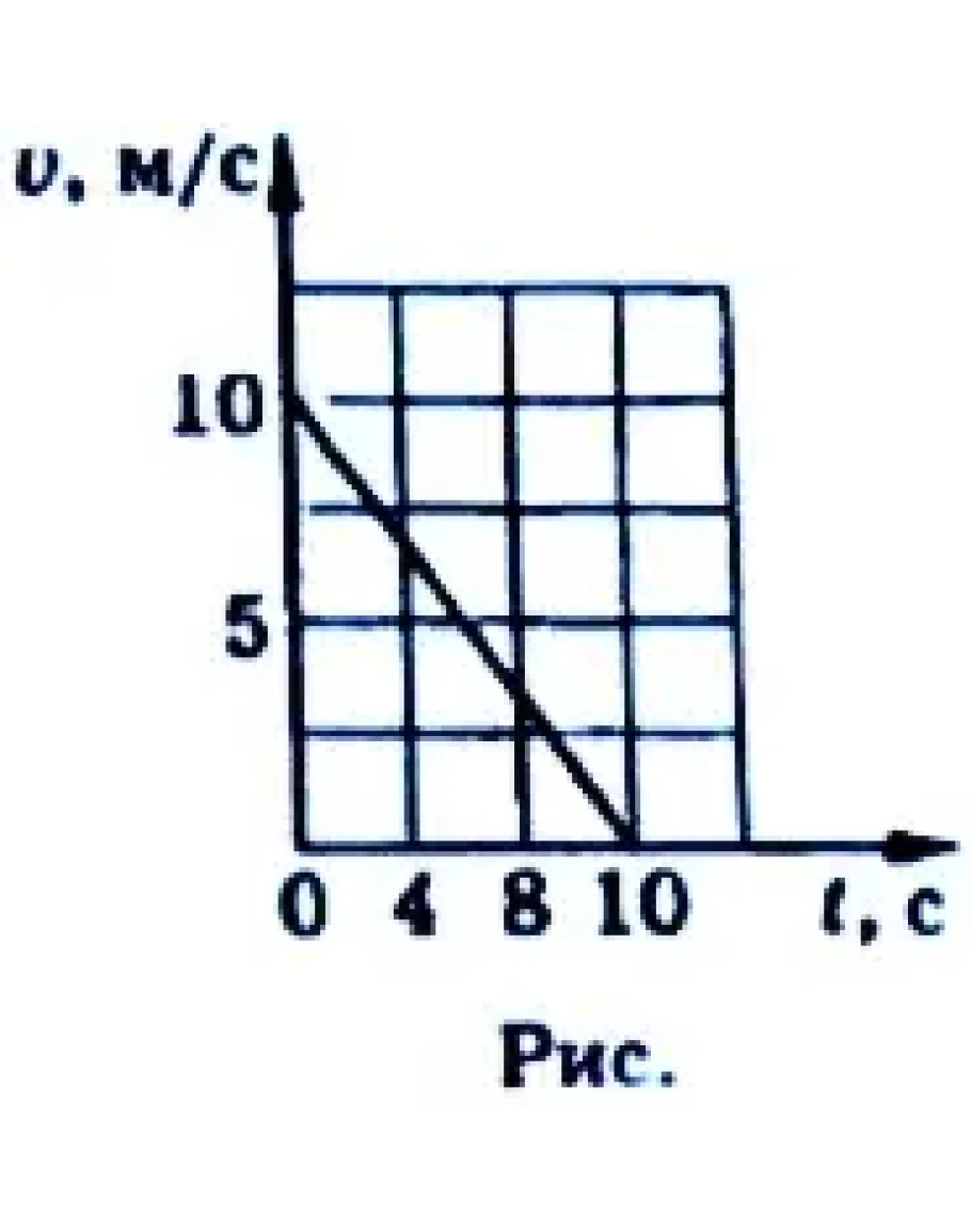 10. По графику зависимости скорости от времени (рис.) определите перемещение тела за первые 10 с его движения.