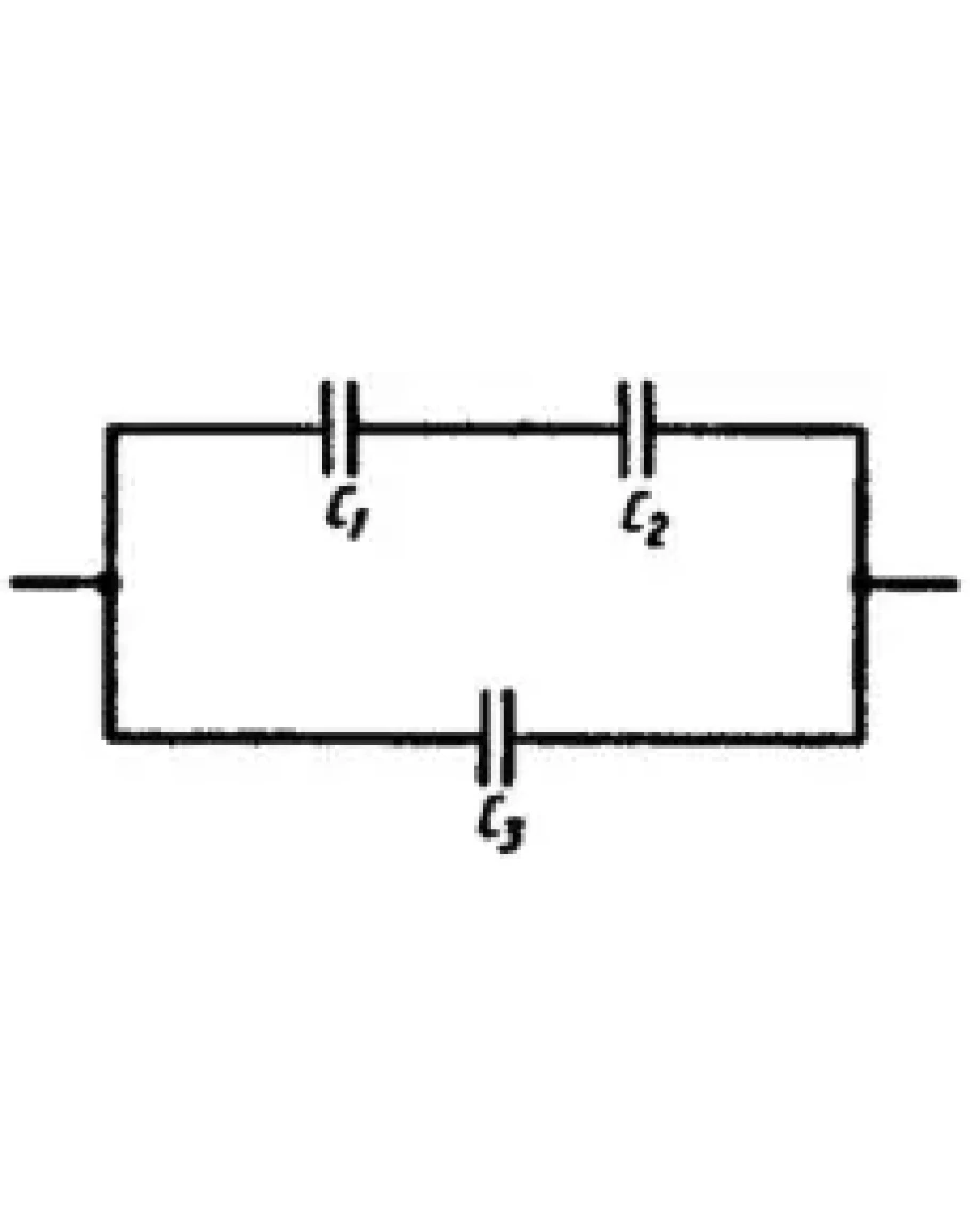99. Определить электроемкость батареи конденсаторов, изображенной на рис., если C1 = 0,1 мкФ, С2 = 0,4 мкФ и С3 = 0,52 мкФ.