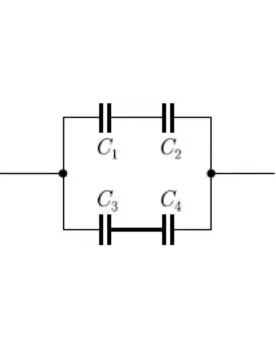 1. Какова эквивалентная емкость батареи конденсаторов, если С1 = 40мкФ, С2 = 20мкФ, С3 = 20мкФ, С4 = 10мкФ?