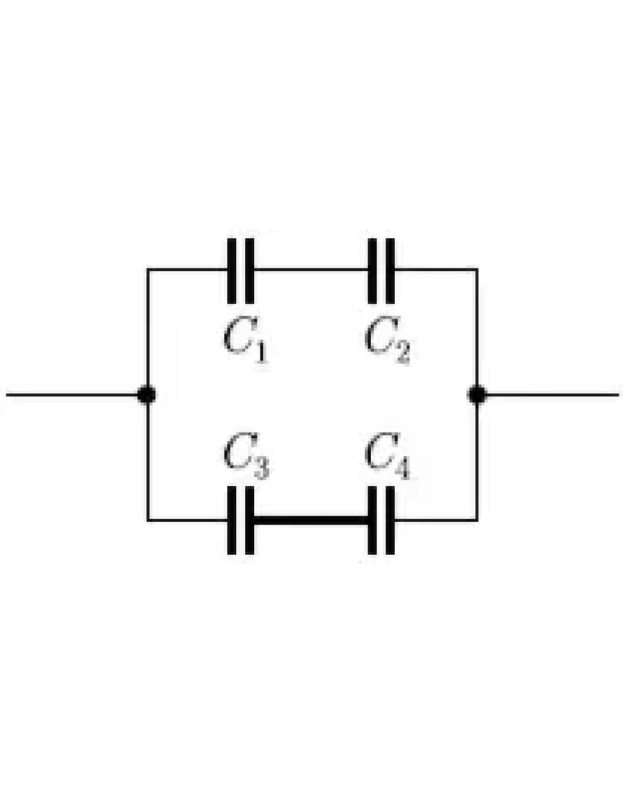 32. Определите емкость C батареи конденсаторов, изображенной на рисунке. Электроемкость каждого конденсатора Ci = 1 пФ (i = 1, …, 4).