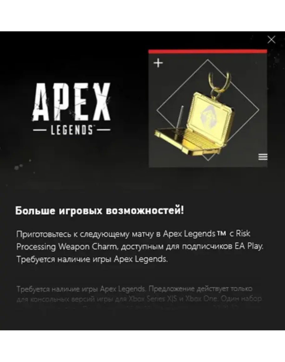 Приготовьтесь к следующему матчу в Apex Legends TM с Risk Processing Weapon Charm, доступным для подписчиков EA Play.