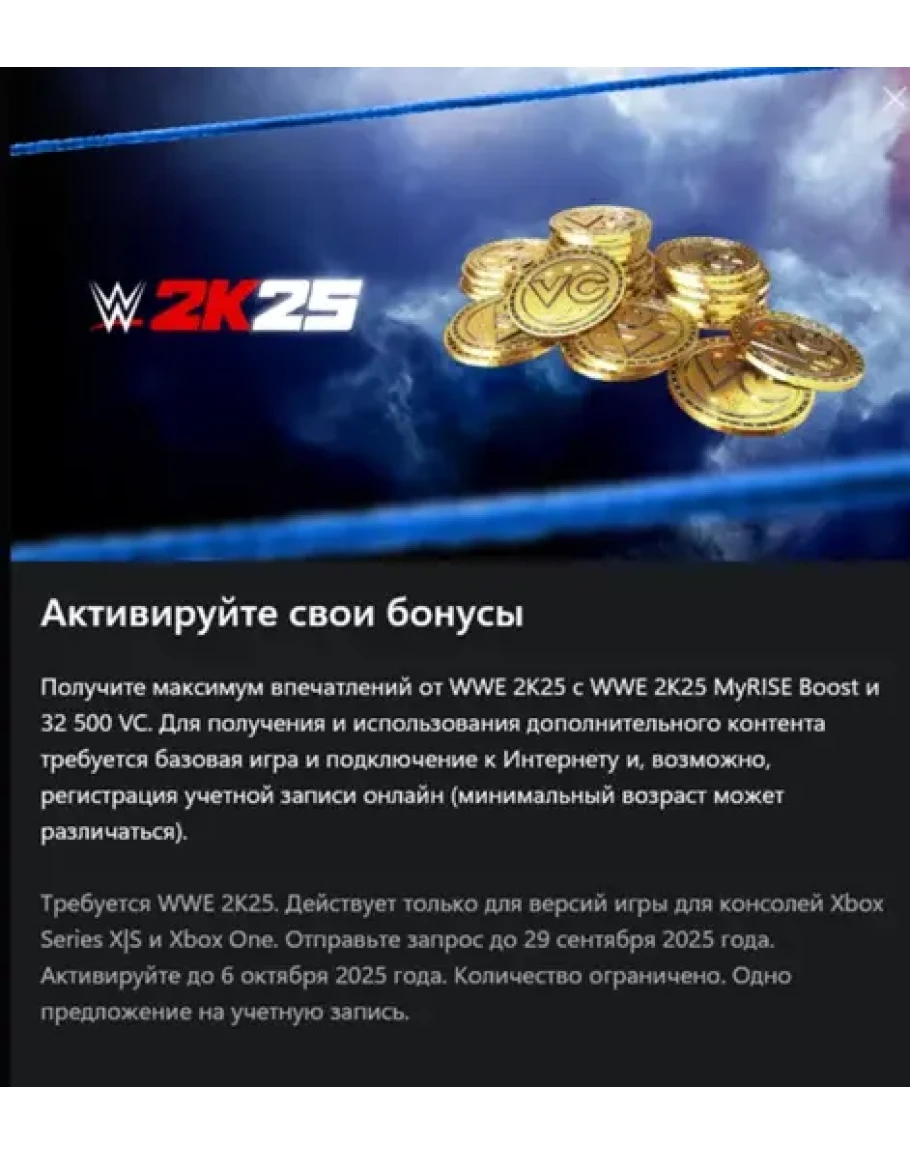 Требуется WWE 2K25. Действует только для версий игры для консолей Xbox