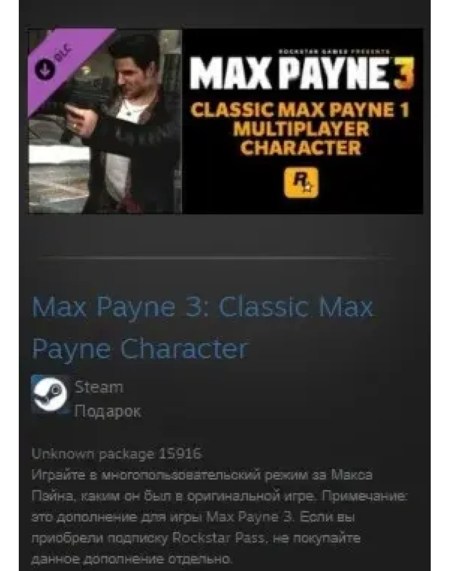 Играйте в многопользовательский режим за Макса Пэйна, каким он был в оригинальной игре. Примечание: это дополнение для игры Max Payne 3. Если вы приобрели подписку Rockstar Pass, не покупайте данное дополнение отдельно.