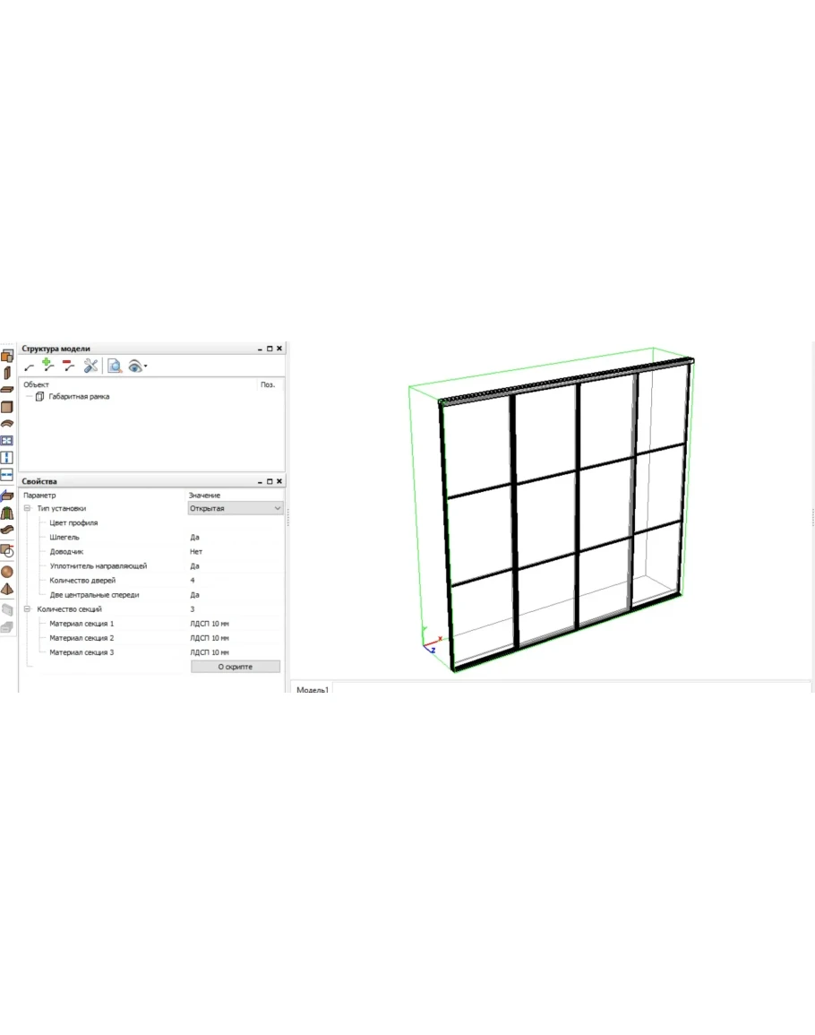 Установка Aristo Slim Line по пяти границам с выбором системы, профилей и количества секций в двери и дверей. Работает в Базис Мебельщик версиях 10-22
