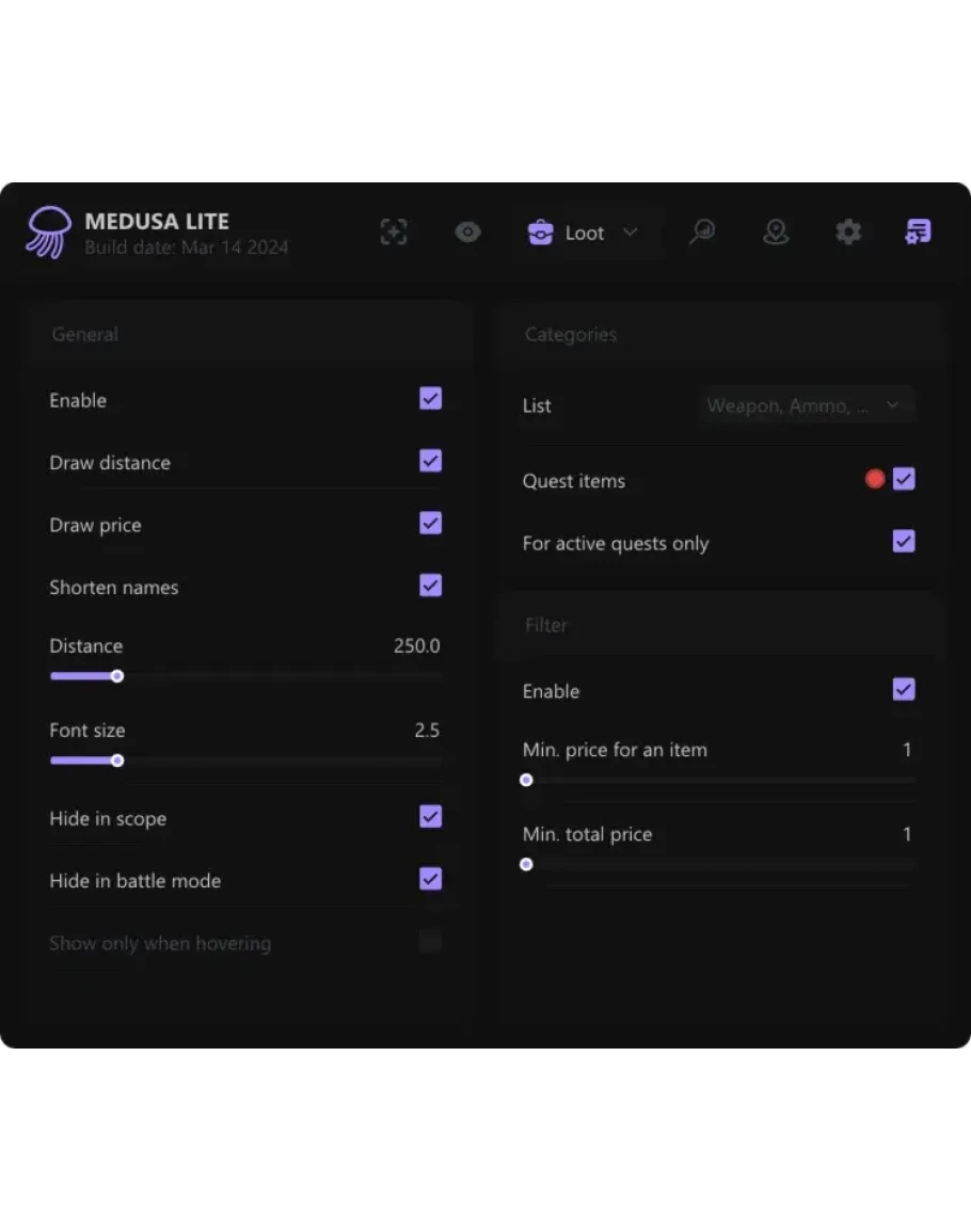 Купи рабочий приватный чит Medusa Lite для игры Escape from Tarkov