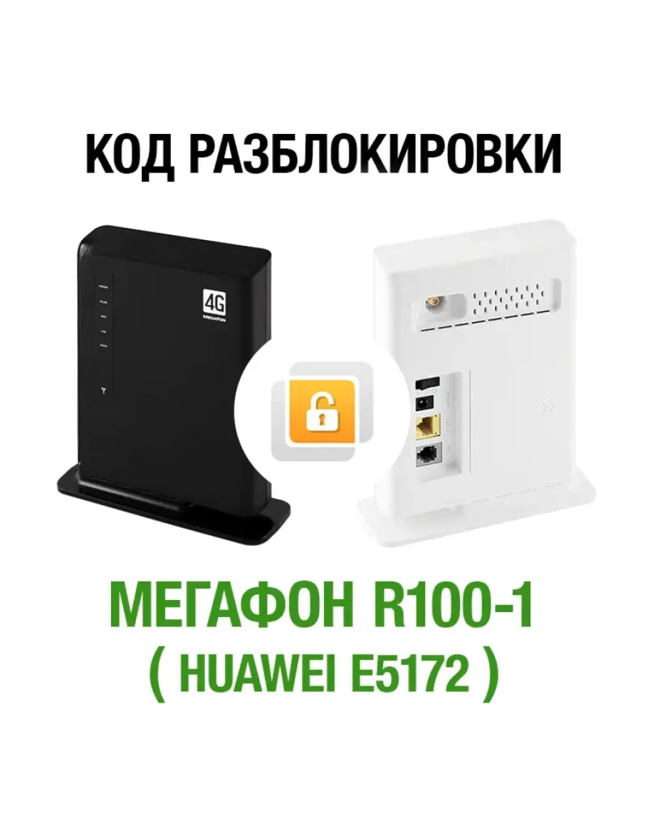 Разблокировка МегаФон R100-1 (Huawei E5172) специальным NCK-кодом. Разлочка сети 4G WiFi-роутера от любого оператора осуществляется с помощью уникального NCK-кода, сгенерированного на основе IMEI-номера специально для вашего устройства.