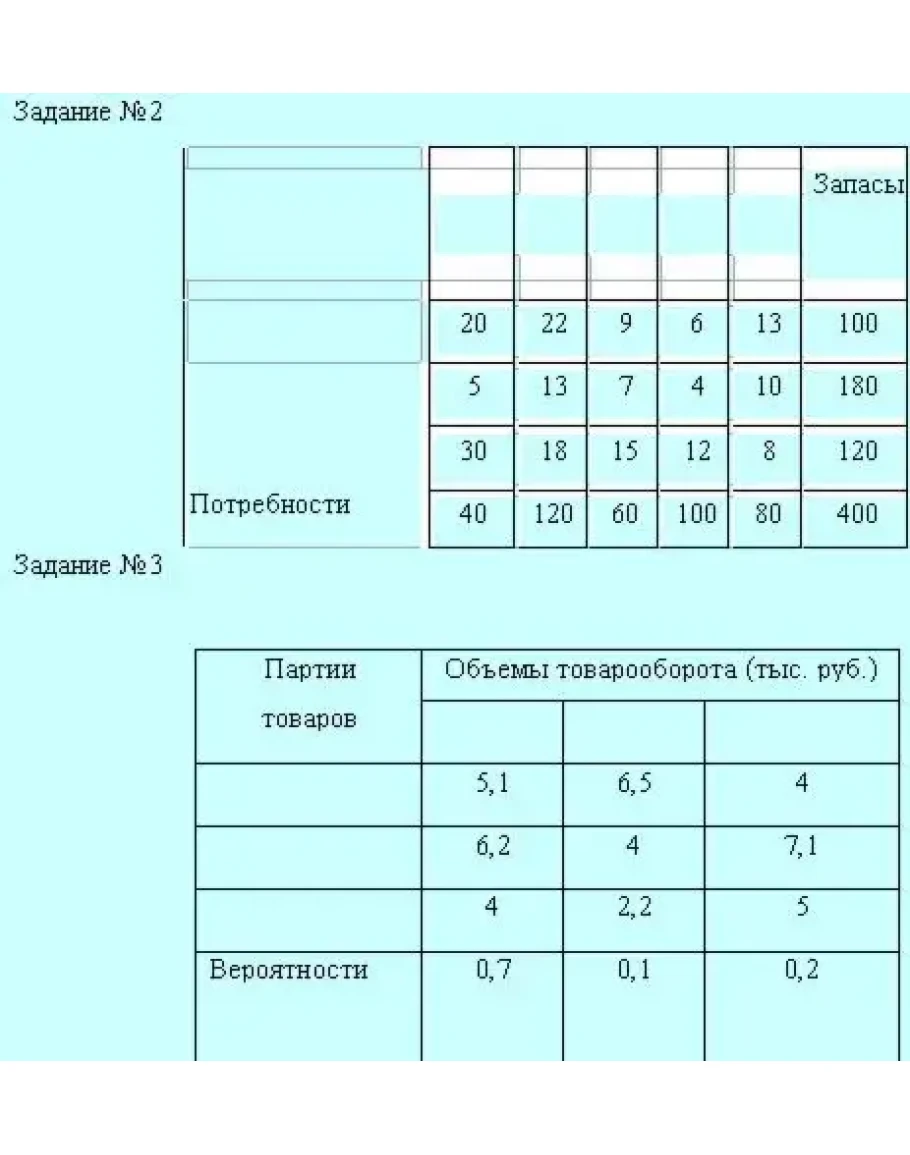 (Числовые данные для выполнения решения задачи - запасы, потребности, тарифы –