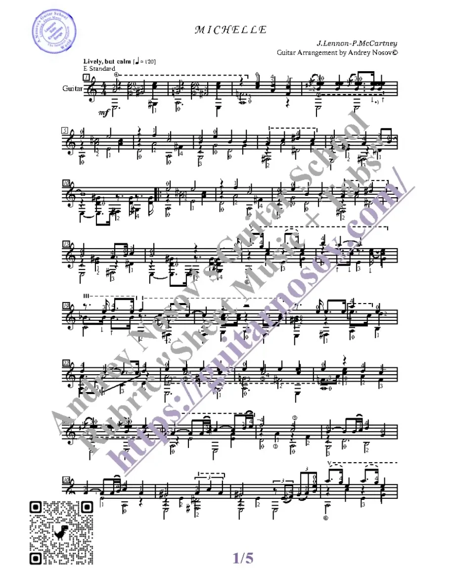 Кликните "Подробнее" для получения дополнительной информацииВашему вниманию предлагается композиция "Michelle (J.Lennon-P.McCartney)", предназначенная для исполнения на 6-ти струнной гитаре СОЛО. Запись выполнена нотами, сопровождена подробнейшей аппликатурой и продублирована табулатурой.