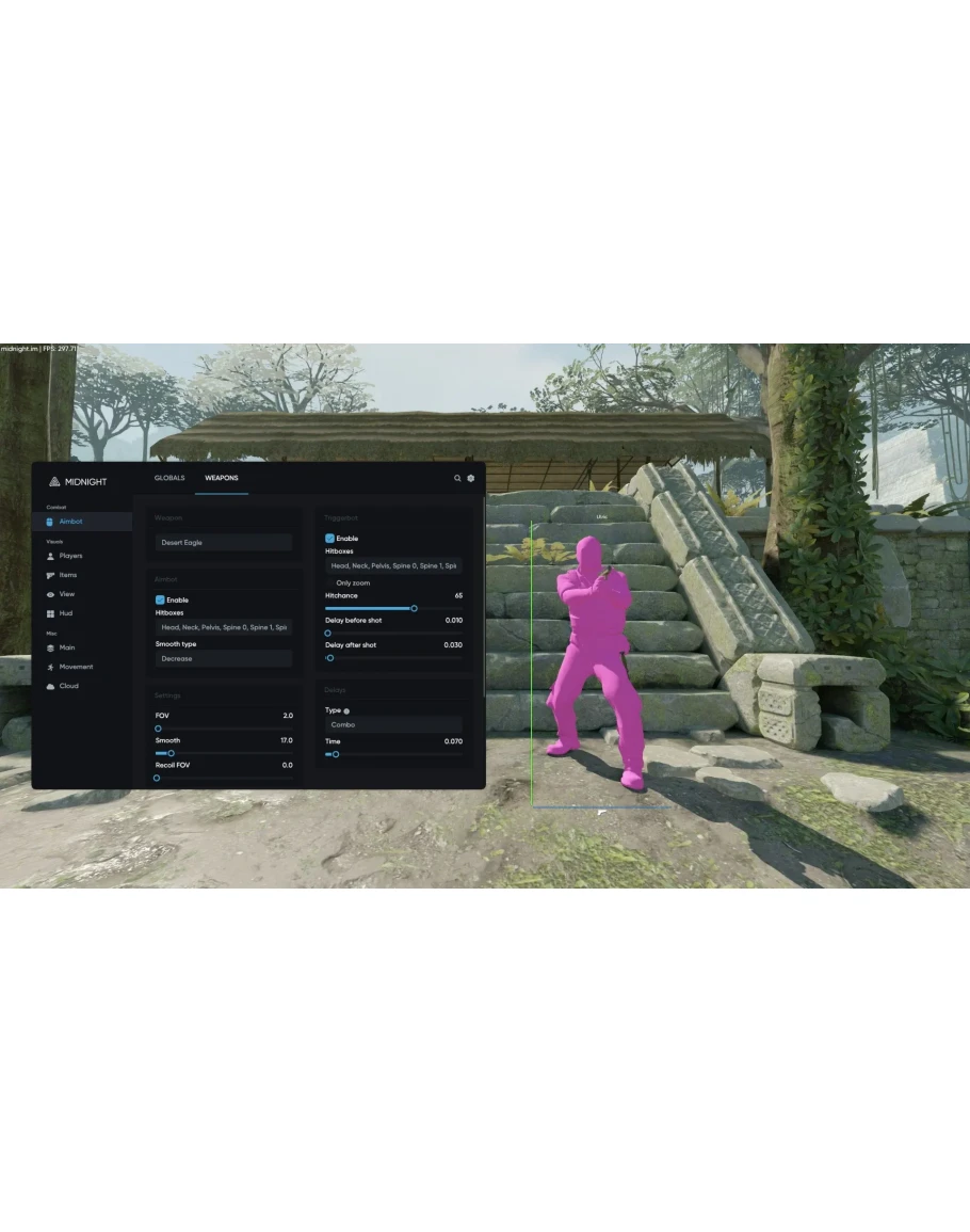 Качественный приватный чит Midnight для игры Counter-Strike 2. Действительно топовый софт, о котором знает огромное количество пользователей. Когда я сижу на каком-либо форуме и читаю сообщения о том, что просят совет, касательно выбора чита - там обязательно встретится Midnight. Его можно долго нахваливать. Рассказывать об их регулярных обновлениях и о том, что программа не подвергалась массовым блокировкам. Но, пока вы сам не попробуете - не поймете. Чит можно смело рекомендовать. У него армия пользователей, которая в один голос вам скажут, что лучше варианта на рынке нет. А может я это все нафантазировал?
