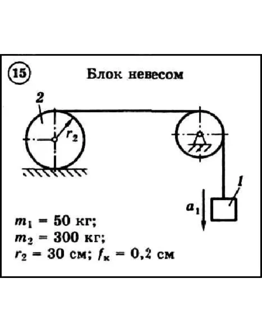 Для приведенной на схеме механической системы, используя уравнения Лагранжа второго рода, определить указанное на схеме угловое ускорение или линейное ускорение. Нити невесомы и нерастяжимы. Принятые обозначения: m - массы тел, R и r - радиусы, ρ - радиус инерции (если он не указан, тело считать однородным цилиндром); при наличии трения указываются: f - коэффициент трения скольжения, fk - коэффициент трения качения.