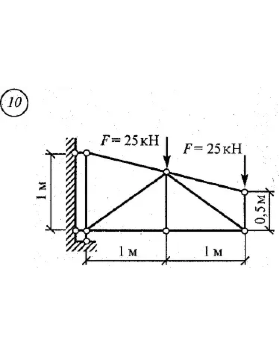 Определить усилия в стержнях консольной фермы аналитическим и графическим способами по данным одного из вариантов, приведенных на рис.33. В заданиях с нечетными вариантами рассмотреть три узла, а с четными - четыре, начиная от свободного конца.