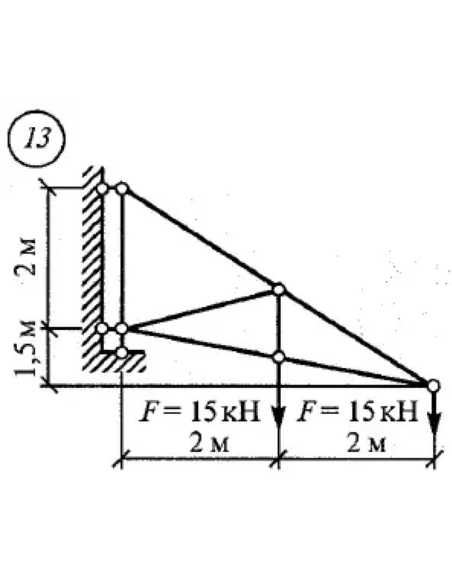 Определить усилия в стержнях консольной фермы аналитическим и графическим способами по данным одного из вариантов, приведенных на рис.33. В заданиях с нечетными вариантами рассмотреть три узла, а с четными - четыре, начиная от свободного конца.
