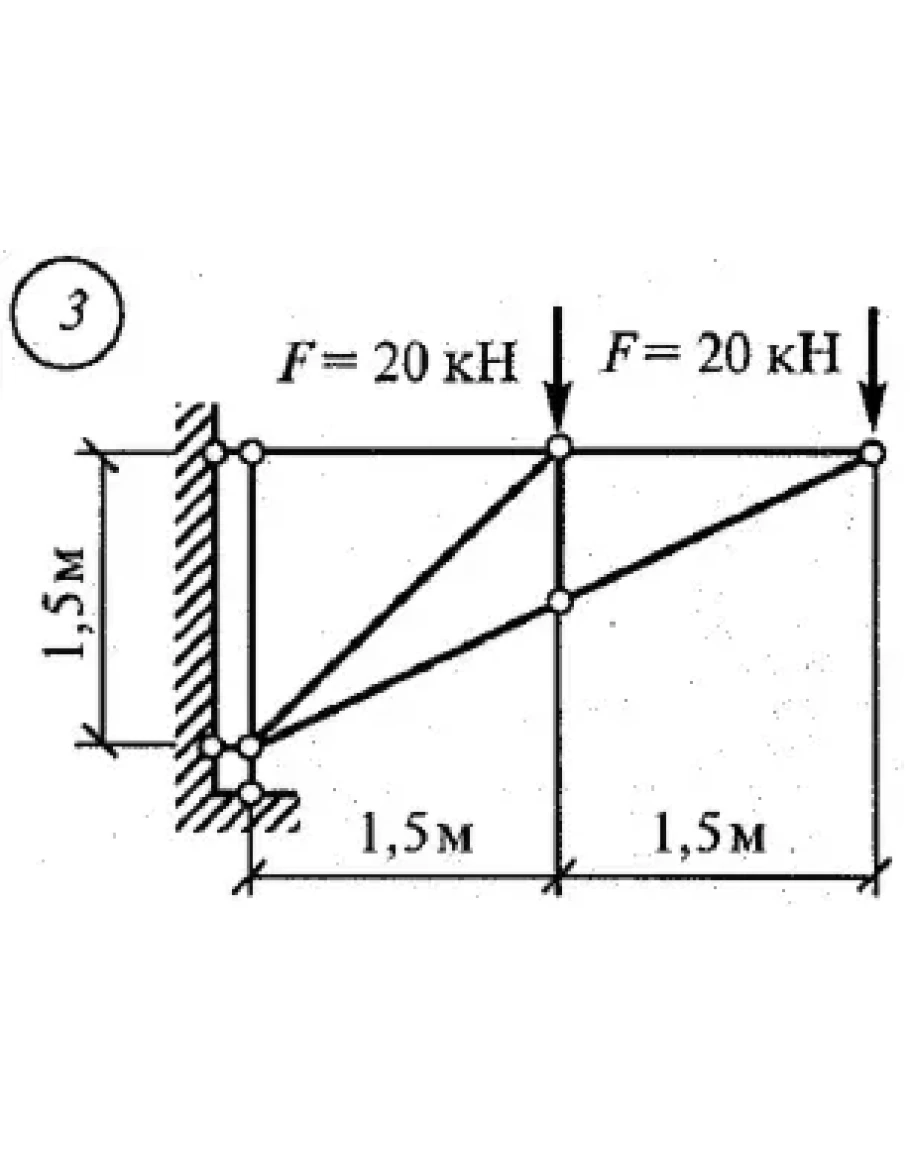 Определить усилия в стержнях консольной фермы аналитическим и графическим способами по данным одного из вариантов, приведенных на рис.33. В заданиях с нечетными вариантами рассмотреть три узла, а с четными - четыре, начиная от свободного конца.