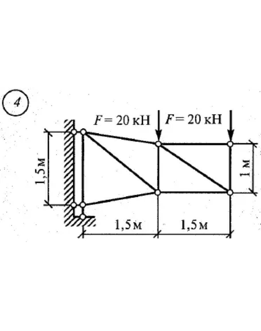 Определить усилия в стержнях консольной фермы аналитическим и графическим способами по данным одного из вариантов, приведенных на рис.33. В заданиях с нечетными вариантами рассмотреть три узла, а с четными - четыре, начиная от свободного конца.