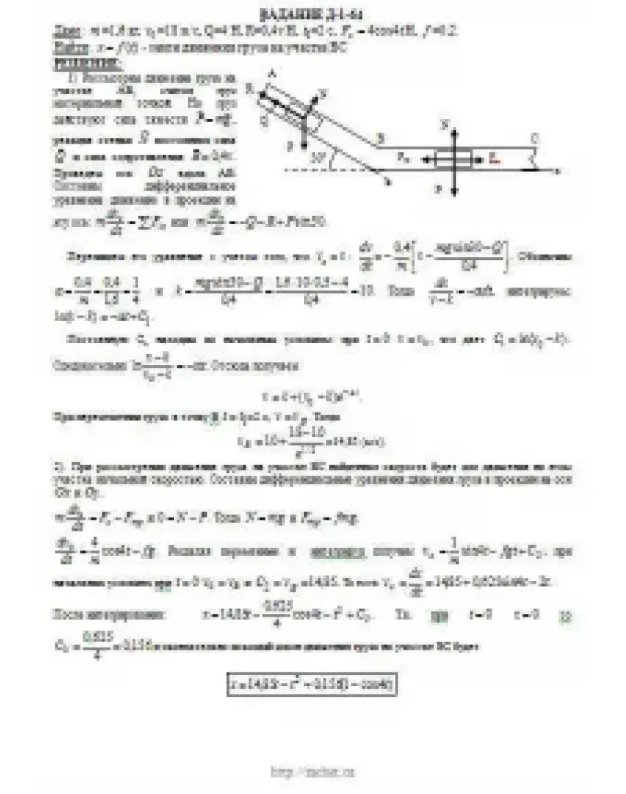 Решение Д1-64 (Рисунок Д1.6 условие 4 С.М. Тарг 1989 г)
