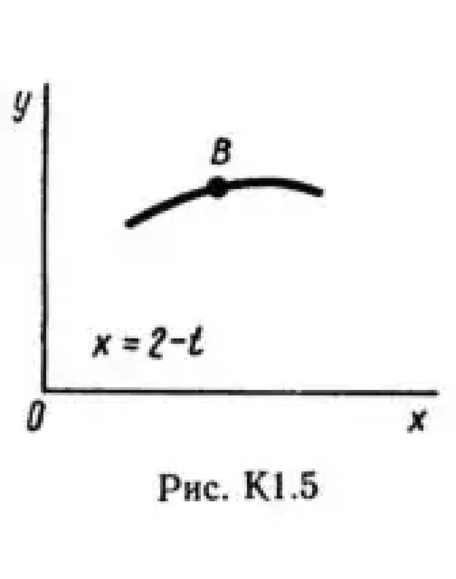 Под номером К1 помещены две задачи К1а и К1б, которые надо решить. Задача К1а. Точка В движется в плоскости xy (рис. К1.0 — К 1.9, табл. К1; траектория точки на рисунках показана условно). Закон движения точки задан уравнениями: x = f1(t), y = f2(t), где x и y выражены в сантиметрах, t — в секундах. Найти уравнение траектории точки; для момента времени t1 = 1 с определить скорость и ускорение точки, а также ее касательное и нормальное ускорения и радиус кривизны в соответствующей точке траектории. Зависимость x = f1(t) указана непосредственно на рисунках, а зависимость y = f2(t) дана в табл. K1 (для рис. 0—2 в столбце 2, для рис. 3—6 в столбце 3, для рис. 7—9 в столбце 4). Как и в задачах С1 — С4, номер рисунка выбирается по предпоследней цифре шифра, а номер условия в табл. К1 — по последней. Задача К1б. Точка движется по дуге окружности радиуса R = 2 м по закону s = f(t), заданному в табл. К1 в столбце 5 (s — в метрах, t — в секундах), где s =AM — расстояние точки от некоторого начала A, измеренное вдоль дуги окружности. Определить скорость и ускорение точки в момент времени t1 = 1 с. Изобразить на рисунке векторы v и a, считая, что точка в этот момент находится в положении M, а положительное направление отсчета s — от А к М.