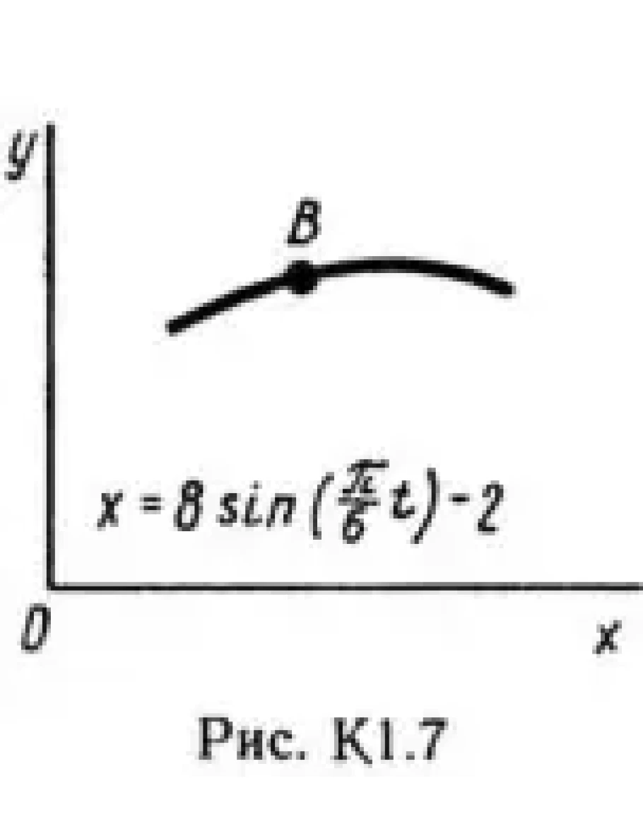 Под номером К1 помещены две задачи К1а и К1б, которые надо решить. Задача К1а. Точка В движется в плоскости xy (рис. К1.0 — К 1.9, табл. К1; траектория точки на рисунках показана условно). Закон движения точки задан уравнениями: x = f1(t), y = f2(t), где x и y выражены в сантиметрах, t — в секундах. Найти уравнение траектории точки; для момента времени t1 = 1 с определить скорость и ускорение точки, а также ее касательное и нормальное ускорения и радиус кривизны в соответствующей точке траектории. Зависимость x = f1(t) указана непосредственно на рисунках, а зависимость y = f2(t) дана в табл. K1 (для рис. 0—2 в столбце 2, для рис. 3—6 в столбце 3, для рис. 7—9 в столбце 4). Как и в задачах С1 — С4, номер рисунка выбирается по предпоследней цифре шифра, а номер условия в табл. К1 — по последней. Задача К1б. Точка движется по дуге окружности радиуса R = 2 м по закону s = f(t), заданному в табл. К1 в столбце 5 (s — в метрах, t — в секундах), где s =AM — расстояние точки от некоторого начала A, измеренное вдоль дуги окружности. Определить скорость и ускорение точки в момент времени t1 = 1 с. Изобразить на рисунке векторы v и a, считая, что точка в этот момент находится в положении M, а положительное направление отсчета s — от А к М.