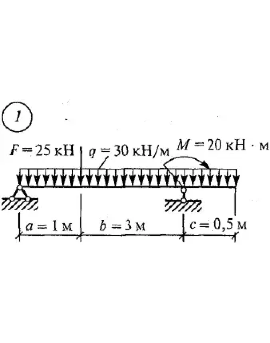 Определить опорные реакции балки на двух опорах по данным одного из вариантов, показанных на рисунке.