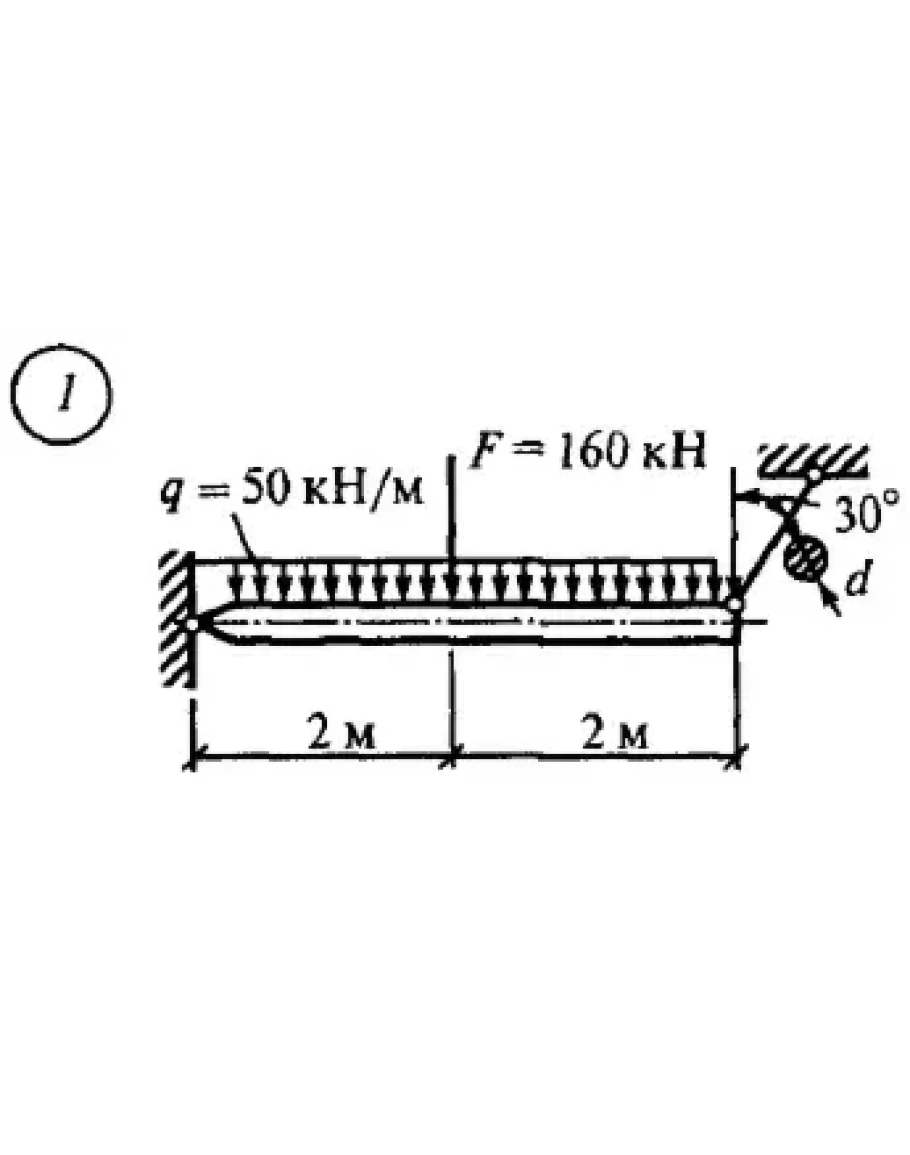 Подобрать сечение стержня-подвески (или колонны), поддерживающего брус AB по данным одного из вариантов, приведенных на рис.
