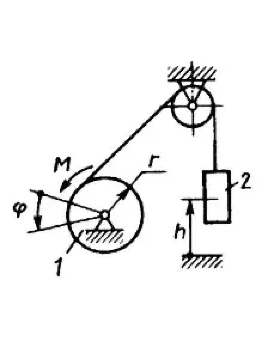 На барабан 1, радиус которого r =0,1 м, действует пара сил с моментом М = 40 + ?2.