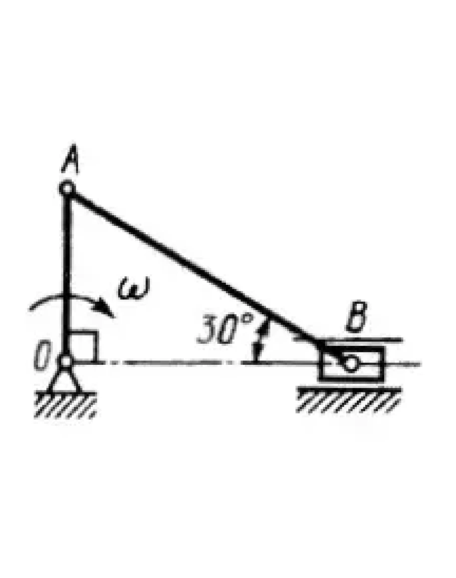 Для указанного положения механизма определить кинетическую энергию шатуна АВ массой m = 1 кг, если кривошип ОА длиной 0,5 м вращается вокруг оси О с угловой скоростью ? = 2 рад/с. (Ответ 0,5)