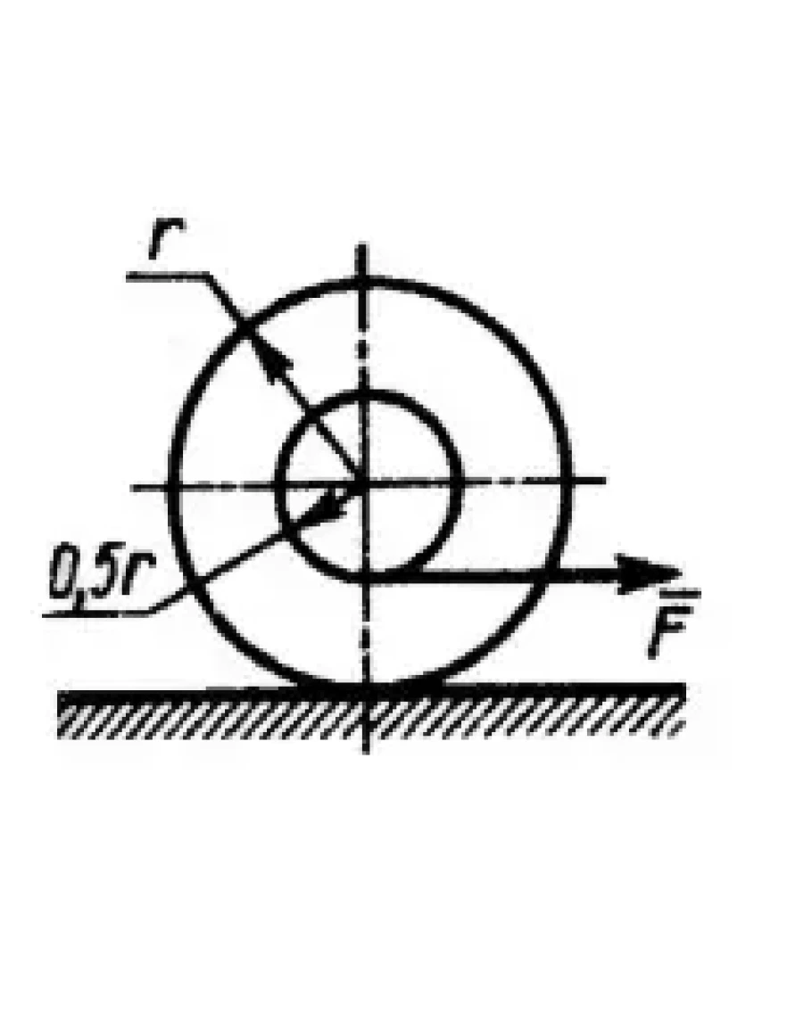 силой F = 0,5Н. Определить угловое ускорение катушки, полагая, что качение происходит без