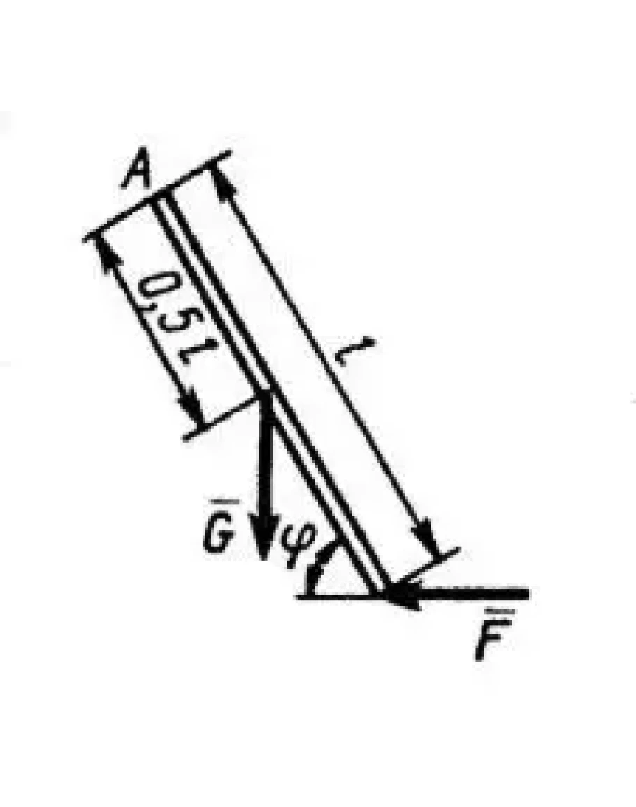Определить главный момент системы двух сил относительно точки А, если силы G = 1Н, F = 5Н, расстояние l = 0,2 м, угол ?=60°. (Ответ -0,916)