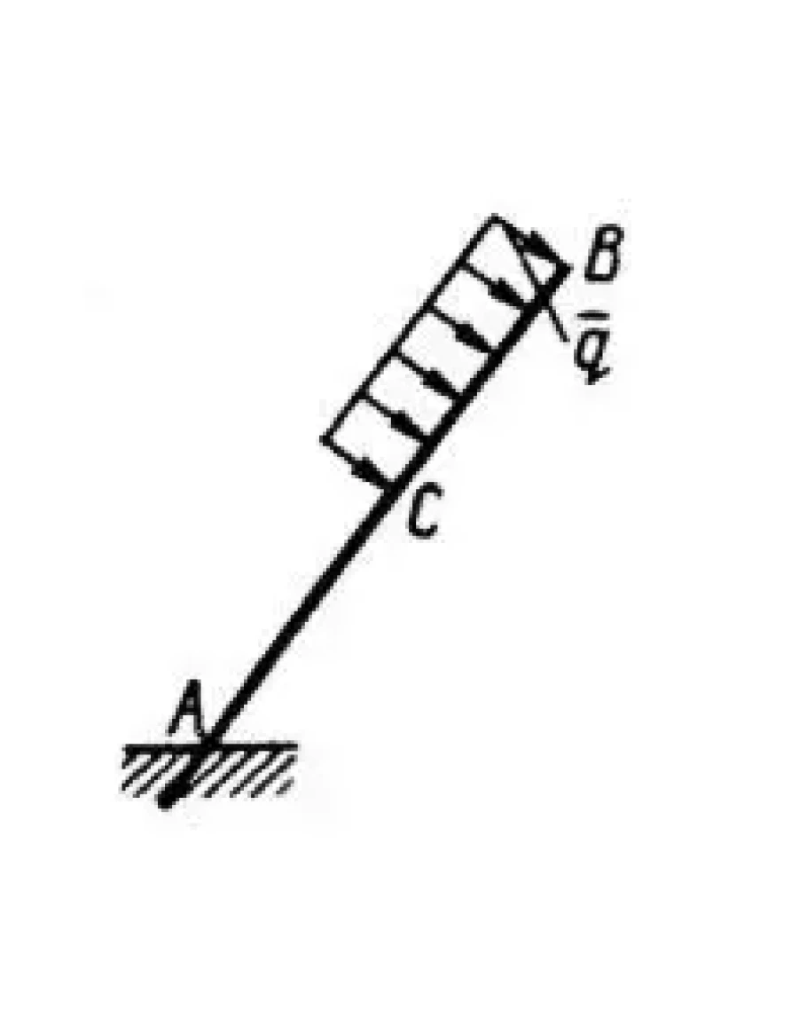 Определить длину участка ВС, при которой момент в заделке А равен 180 Н·м, если размер АС = 2 м и интенсивность распределенной нагрузки q = 30 Н/м. (Ответ 2,0)