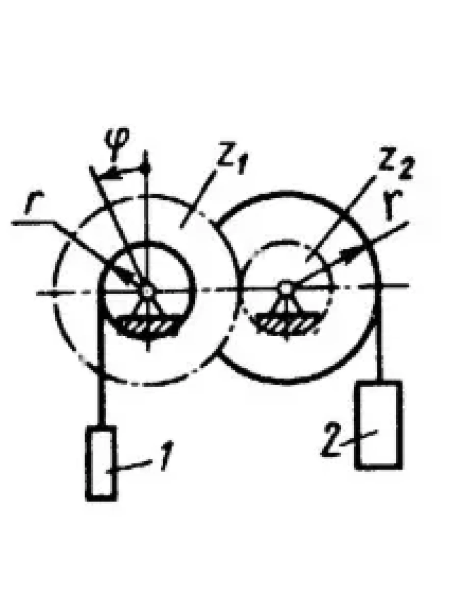 соответствующую обобщенной координате если массы грузов m1 = 1 кг, m2 = 2 кг, радиус r =